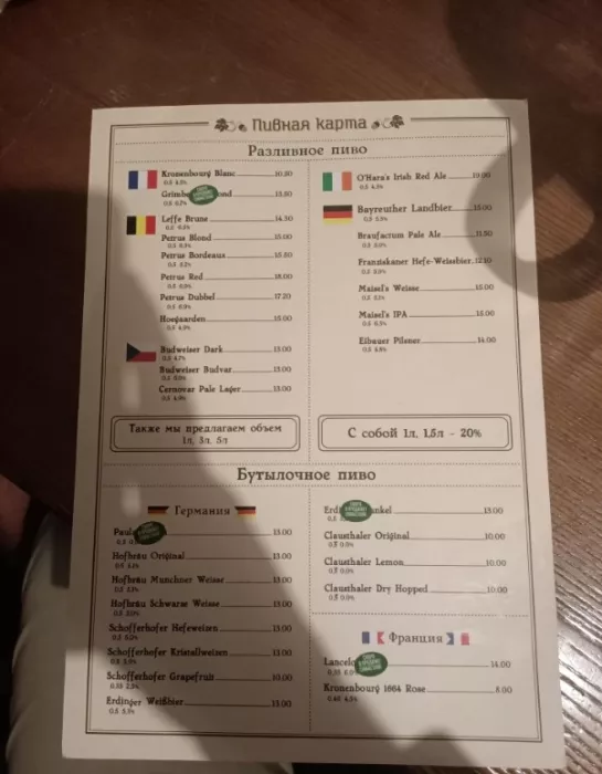 Заведение располагает 4 залами, каждый из которых способен перенести гостя в пивные столицы с яркой пивной культурой и традициями